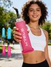 1 Set Botella de agua plegable WRELS con pajita, a prueba de fugas, ligera, de material de silicona, portátil, adecuada para correr, fitness, ciclismo, camping, deportes al aire libre y accesorios para bicicleta