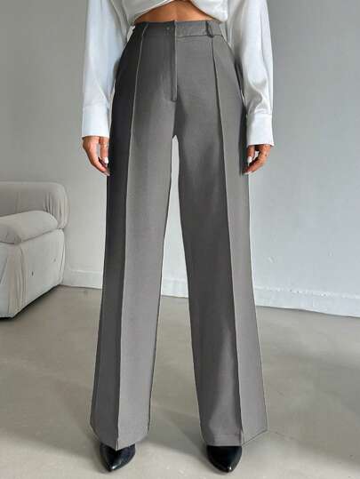 EURMUSE Pantalones casuales de pierna recta con botones delanteros de unicolor para uso diario - Gris Claro - Añade 2