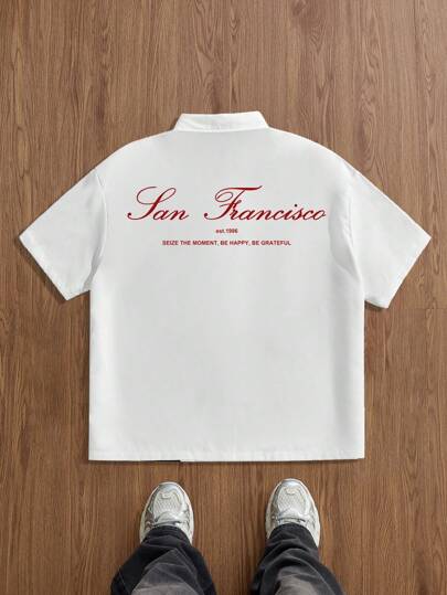 Manfinity VCAY Camisa informal holgada talla grande para hombre con estampado de letras en blanco, apropiada para el verano - Blanco - Añade 1