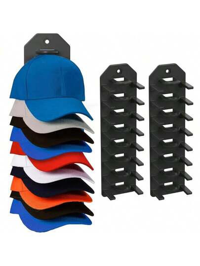 1/2/4 piezas Estante de almacenamiento de gorra de béisbol, Estante de gorra montado en la pared con adhesivo fuerte, Estante de exhibición de almacenamiento de sombrero de varias capas, Ganchos para colgar sombreros montados en la pared, Adecuado para puertas de armarios y dormitorios - Multicolor - Añade 8