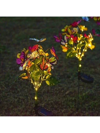 1/2/4 piezas Luces de estaca de jardín con mariposas y flores LED solares y multicolor, decoración exterior a prueba de agua para jardín, césped - Rosa - Añade 2