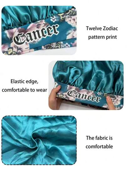 1/2 piezas Gorro de satén básico para el cabello con impresión personalizada de 12 constelaciones, gorro de dormir de satén de ala ancha elástico (patrón de impresión aleatorio) - verde sm12 - Añade 23