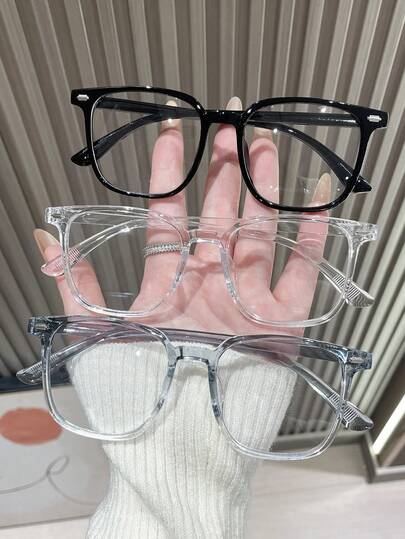 1/3 piezas Gafas rectangulares transparentes con tachuelas para uso diario y lectura, accesorio para Halloween de mujeres - Multicolor - Añade 3