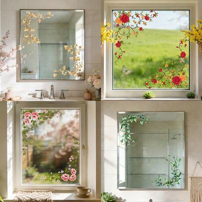 1/4 piezas Película adhesiva para ventana, película de adsorción electrostática. PVC removible e impermeable, con patrón floral colorido. Adecuado para pegatinas de espejo, decoración de dormitorio y del hogar, reutilizable. - multicolor - Añade 15