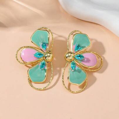 1 par de pendientes elegantes bohemios de metal hueco 3D con esmalte floral, adecuados para el uso diario de las mujeres, regalo para la novia o la madre, hechos a mano, con variaciones en la forma, el color y la colocación del patrón floral - Multicolor - Añade 1