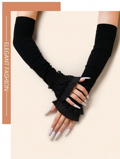 1 par de mangas de protección solar de gasa, diseño acampanado, estilo largo, para mujeres, para el verano - Multicolor - Añade 1