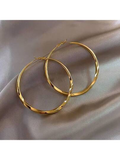 1 par de pendientes de aro metálicos, estilo europeo, para uso diario y fiestas - 3499 oro - Añade 3