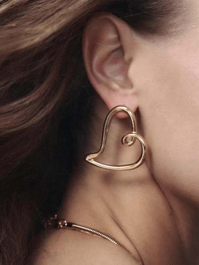1 par de pendientes de aro minimalistas con diseño de corazón hueco de aleación, elegantes y versátiles pendientes del Día de San Valentín para mujeres