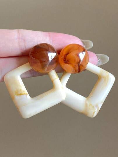 1 par de pendientes de botón de resina con diseño de rombos en estilo tie-dye minimalista - beige - Añade 2