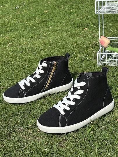 1 par de zapatos deportivos con cordones y cremallera, cómodos - Negro - Añade 4