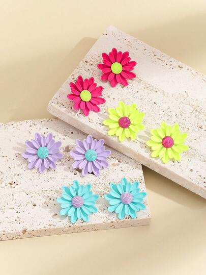 1 par de pendientes de botón con flores de margarita pintadas con aerosol para mujeres - Pendientes de flores de margarita pintadas - Añade 4