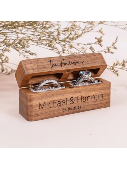 1 pieza Caja personalizada para anillos de boda, caja de anillos de madera doble ancha, caja portaanillos, portaanillos único y delicado, caja de anillo de compromiso, caja de anillo con cierre magnético, boda rústica moderna, multifuncional, anti-moho, decorativa, sellada, exquisita, de moda, de alta calidad, linda, moderna, personalizada, única, ambiente cálido, decoración de otoño, organizador de joyas, organizador de armario