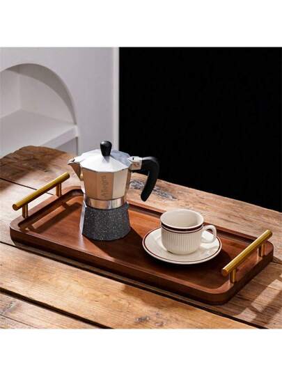 1 pieza Bandeja rectangular de bambú con asa dorada, plato de comedor vintage para el hogar, plato para aperitivos, postres, bandeja para té - Marrón - Añade 1