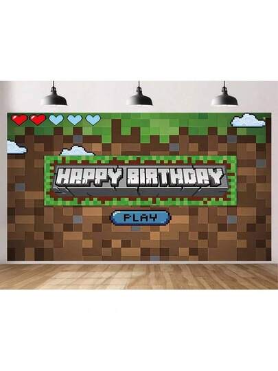 1 pieza de tela de fondo de fiesta de cumpleaños estilo Pixel - Tema de juego multifuncional de poliéster, adecuado para fotomatón y decoración de habitación - 1 - Añade 1