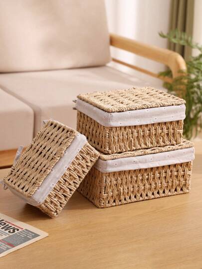 1 Pieza Caja de Almacenamiento de Sobremesa, Caja de Almacenamiento Tejida de Ratán de Papel, Cesta de Almacenamiento con Tapa, Cesta de Almacenamiento de Misceláneos, Bocadillos, Cosméticos, Cesta de Almacenamiento de Cocina, Juguetes, Cosméticos, Cesta, Macetero de Cuerda Bohemia - Flor de margarita caqui - Añade 11