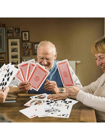 1 Set de 54 cartas de juego extra grandes, juegos de cartas de fiesta familiar - Multicolor - Añade 1