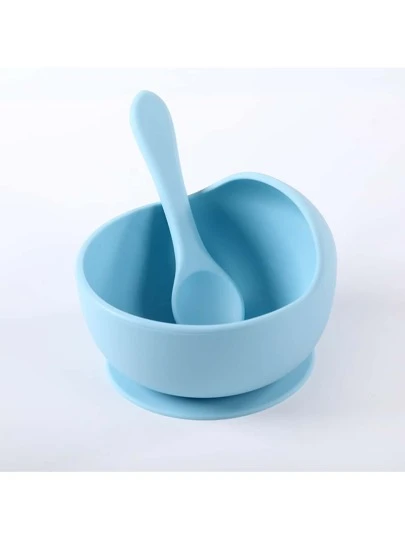 1 Set alimentación del bebé Bol con Set cuchara , de silicona succión Bol con entrenamiento Cuchara , niños vajilla - Azul - Añade 1