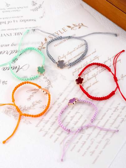 1 Set de pulsera elegante y dulce con decoración de 5 flores esmaltadas hecha a mano con cordón, accesorio de alta gama para mujeres - Pulsera - Añade 6