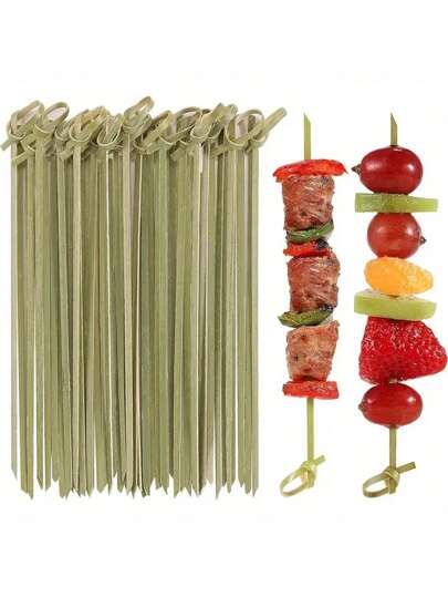 1 Set de 100 piezas Pinchos de bambú para frutas, pan, palillos de 6 pulgadas, pinchos decorativos con nudos verdes, en oferta para fiestas de Halloween