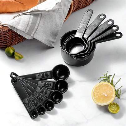 10/11 piezas/Set Juego de tazas y cucharas de medir de plástico, en colores caqui, negro, gris, rosa, rojo y blanco. Juego de medición para cocinar y hornear, con 5 tazas de medir y 5 cucharas de medir con nivel, para ingredientes secos y líquidos, diseño anidado y agarre fácil. Herramientas de medición para la cocina.