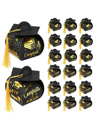 10/20 piezas Cajas de regalo con gorro de graduación, cajas de embalaje con borla dorada, decoración central para fiestas de graduación, obsequios de fiesta de celebración de graduación - Multicolor - Añade 3