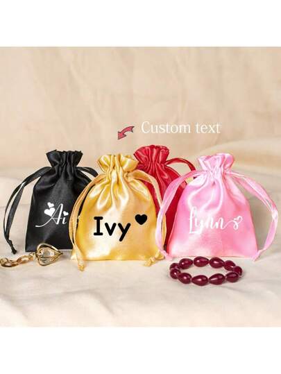 10 PIEZAS Bolsas de satén suaves y lisas personalizadas, bolsas de regalo de boda con cordón, bolsas de empaque de joyería, bolsas de dinero nupcial con cordón - Multicolor - Añade 1