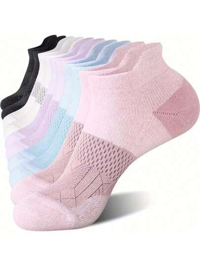 10 pares de calcetines de tobillo para mujer de colores mixtos, calcetines cortos transpirables, sin costuras en los dedos y sin pelusas, adecuados para exteriores, deportes, ciclismo, todo el año - Multicolor - Añade 10