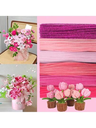 100/300/600 piezas Limpiapipas rosas, 6 colores diferentes, limpiapipas artesanales para fiestas, tallos de chenilla para proyectos de manualidades y artes DIY - Rosa - Añade 8