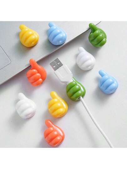 10 piezas Abrazaderas grandes para cables con diseño de mano de dibujos animados, organizador de cables de cargador de silicona, soporte de gestión de cables telefónicos y de datos, organizador de cables multifunción, sin batería - Multicolor - Añade 5