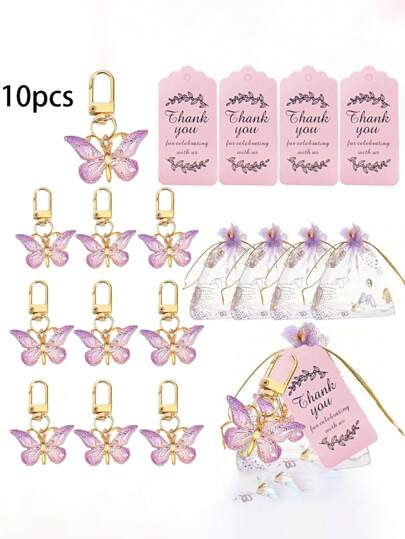 10 piezas de llaveros con colgantes con forma de mariposa de color degradado, decoración creativa DIY para mochila, estuche de auriculares, regalo minimalista - Púrpura - 10 juegos - Añade 4