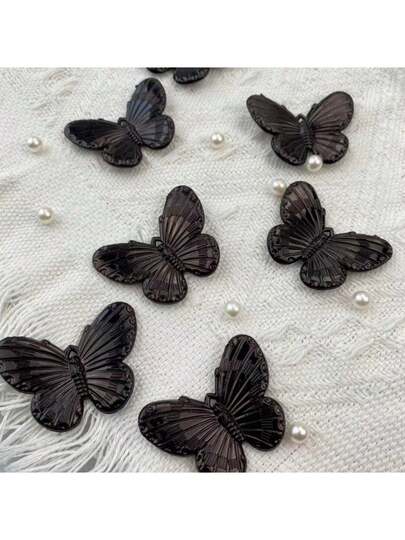 10 piezas/paquete Decoración de mariposa sólida negra de resina con agujero para manualidades DIY - Negro - Añade 7