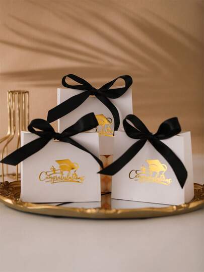 10 bolsas de regalo de papel, bolsa de fiesta con decoración de moño con estampado de gorro de graduación metálico modernista para fiesta de graduación - Multicolor - Añade 1