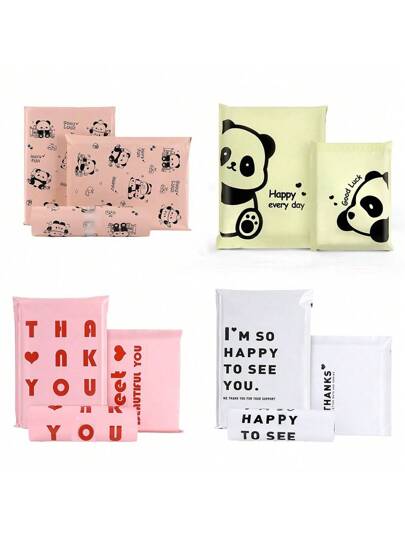 10 piezas Bolsas de mensajería impermeables y gruesas, de plástico de 12 mil, con texto en inglés y estampado de panda, bolsas de empaque de 11 mil, bolsas de entrega de caja con avión autoadhesivas para logística y envíos, para volver a la escuela - Multicolor - Añade 4