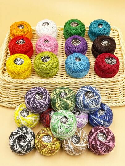 Set de 12 hilos de encaje tejido de unicolor/mezclados, tonos vibrantes (color aleatorio), para DIY de punto, ganchillo, micro gancho, punto de cruz, pasadores de cabello hechos a mano, suéter calado al ganchillo, bordado de línea fina - Multicolor - Añade 1