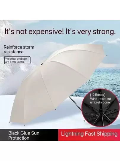 Paraguas extra grande y reforzado de 12 varillas, paraguas manual de doble persona a prueba de viento, apto para hombre y mujer, para todo tipo de clima - Multicolor - Añade 12