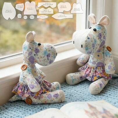 12 piezas Plantilla de costura de hipopótamo, Patrón de costura de PET para hacer juguete de peluche de hipopótamo DIY, Herramienta artesanal, Ideal para amantes de la artesanía, Regalo de cumpleaños y festividades, Incluye manual de instrucciones en inglés - transparente - Añade 1