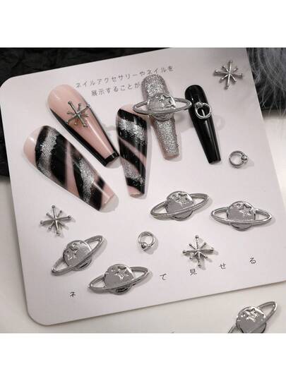 12 Piezas/set 6 Estilos De Aleación Mixta De De Arte De Uñas Para Estilo Punk Vintage, Decoración De Diseño De - Plateado - Añade 5