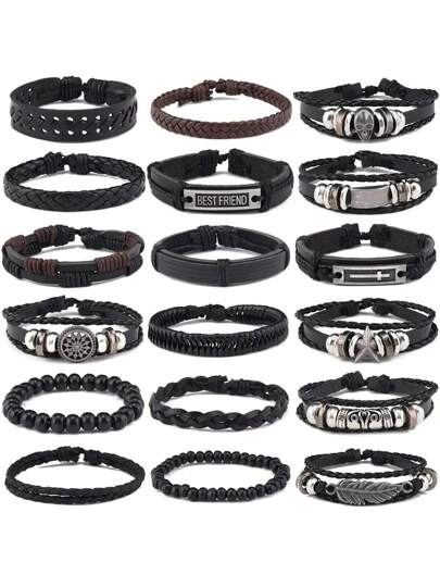18 Piezas De Pulsera De Estilo Callejero Retro Hip-hop, Juego De Joyas Punk Pulsera De Estilo Mixto, Accesorios Para Hombres - conjunto de pulsera - Añade 3