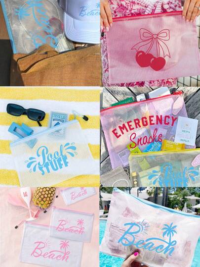 1 pieza/2 piezas/5 piezas Bolsa de cosmético transparente resistente al agua tamaño A4/A5 con cremallera de nailon e impresión de letras de color, bolsa de aseo de gran capacidad personalizada con primer nombre para uso al aire libre - Multicolor - Añade 6