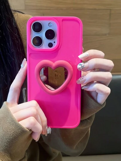 1 pieza Funda de teléfono color rosa con soporte y espejo, compatible con iPhone 16/16 Pro Max/15/14/13 - Rosa Fucsia - Añade 5