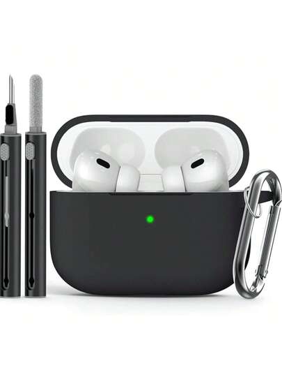 1 PIEZA Estuche de auriculares Bluetooth de silicona suave con bolígrafo de limpieza - Funda a prueba de golpes y resistente a los arañazos, compatible con auriculares inalámbricos Apple 1/2/3/4/Pro/Pro (2.ª generación)Pro3, regalo práctico para hombres y mujeres - Negro - Añade 1