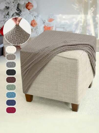 1 pieza Funda de otomana cuadrada de jacquard elástica, antideslizante y duradera para reposapiés, funda todo incluido para taburete, protector de muebles - Multicolor - Añade 1