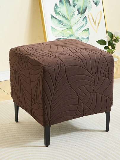 1 pieza/2 piezas Funda para reposapiés cuadrado, patrón de jacquard con hojas elástico, protector envolvente para reposapiés, adecuado para sofá y sala de estar - Café integral - Añade 3