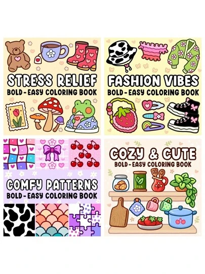 1 pieza Libro de colorear para aliviar el estrés: para adultos y niños, diseños grandes y audaces, sencillos y grandes para relajación con animales, paisajes, flores, patrones, cosas lindas y mucho talla grande, con un diseño de color vibrante y personajes de animales lindos y escenas acogedoras, de vuelta a la escuela - Multicolor - Añade 4