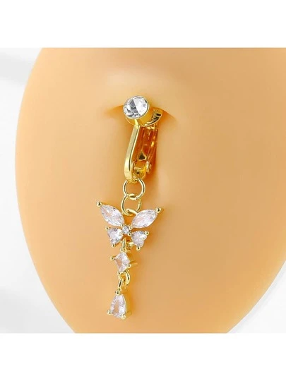 1 Pieza Aro falso para el ombligo con mariposa, no es un piercing real, se coloca en el ombligo, regalo para mujer - Amarillo Oro - Añade 13