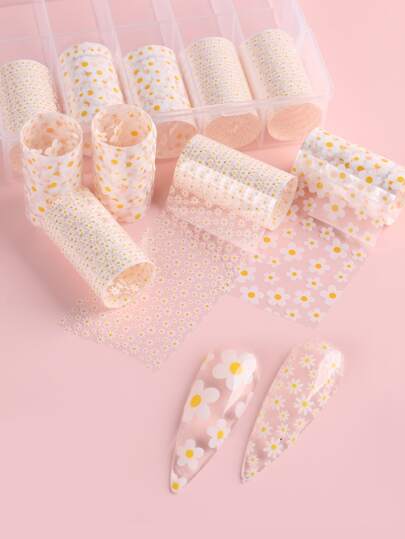 FULL BEAUTY 1 caja Lámina de transferencia para decoración de uñas con diseño de margaritas - Multicolor - Añade 5