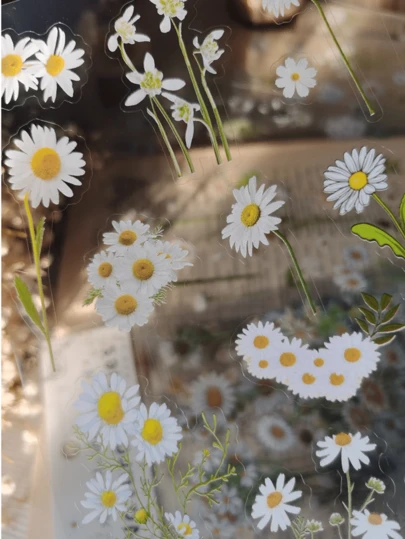 1 paquete/6 hojas Pegatinas decorativas de plantas frescas de crisantemo para mascotas para diarios y vuelta al colegio - Multicolor - Añade 5