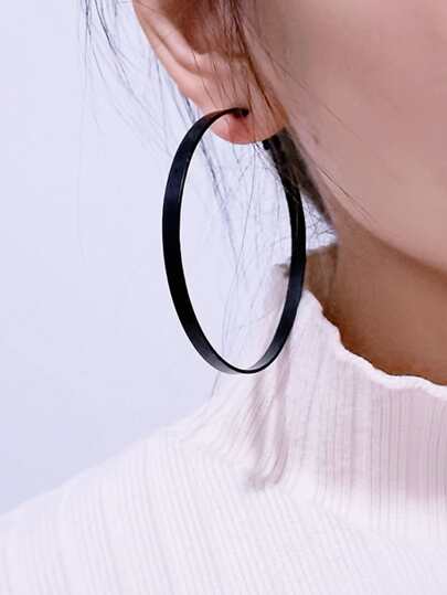 1 par de aros de aro circular negro y ancho, simples y adecuados para fiestas y uso diario de mujeres - Negro - Añade 4