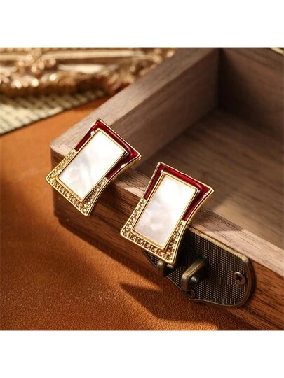salmoph 1 par de pendientes tipo botón cuadrados con concha vintage, apropiados para uso diario para mujeres - EAS-2040 - Añade 1