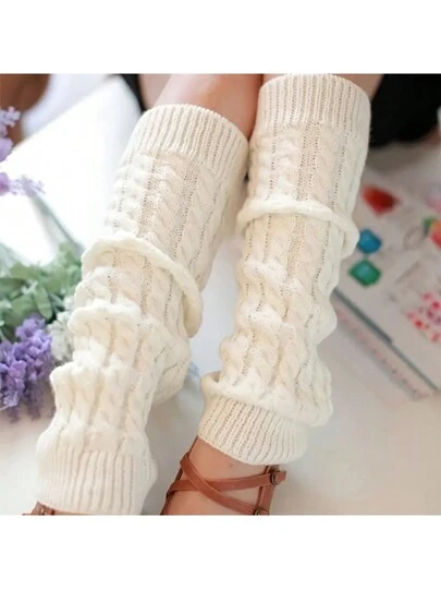 1 Par De Calentadores De Piernas De Punto Blanco Adecuados Para El Uso Diario De Mujeres - Blanco - Añade 1